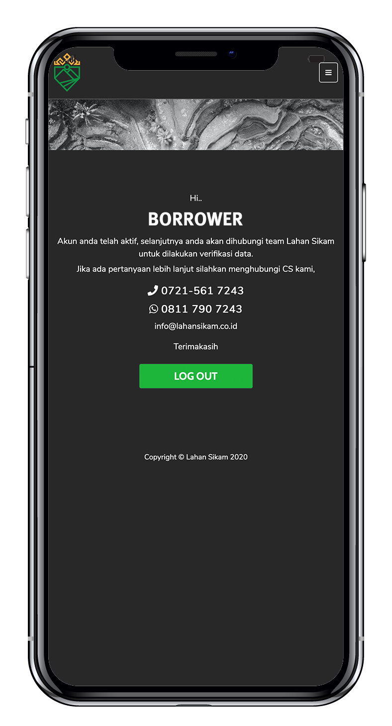 Fasilitas anda akan aktif jika proses verifikasi telah berhasil dan memenuhi kriteria sebagai Calon Peminjam di Lahan Sikam